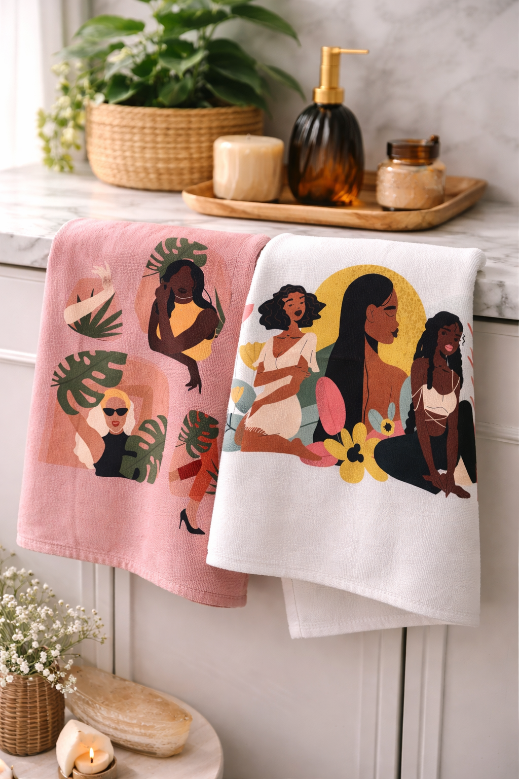 Nossa toalha de rosto une maciez, alta absorção e uma estampa exclusiva que valoriza a beleza feminina em diferentes tons e estilos. Perfeita para o dia a dia, para a academia, para a rotina de skincare ou para deixar o banheiro mais cheio de personalidade.